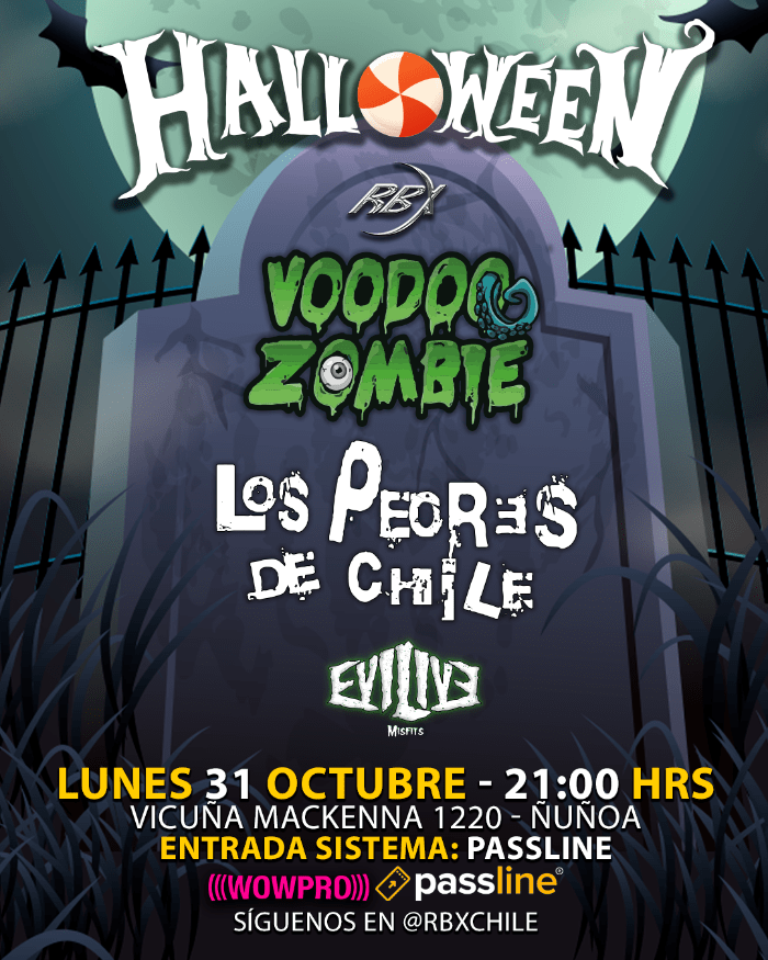 La banda nacional se prepara para una Fiesta de Halloween junto a Los Peores de Chile y la banda tributo a Misfits, Evilve, el 31 de octubre en RBX (Vicuña Mackenna).