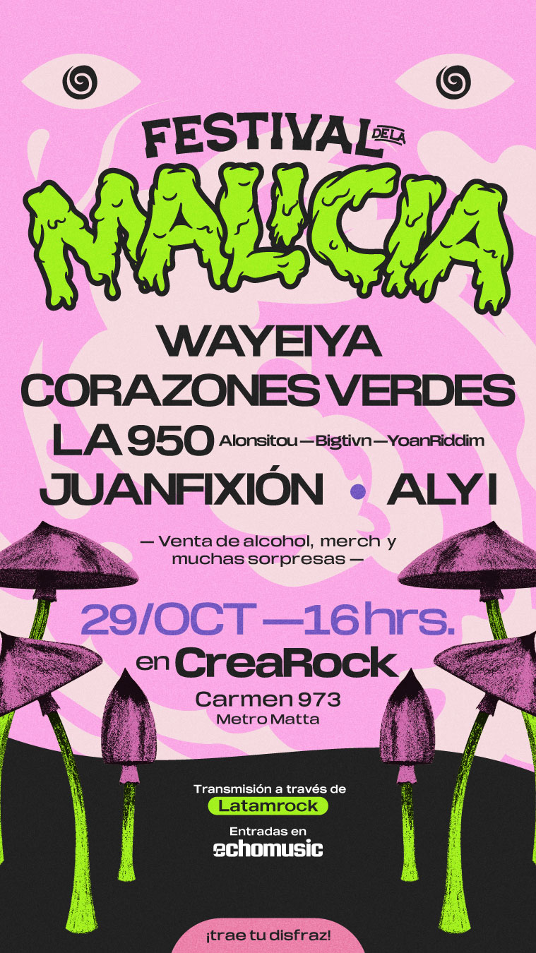 Además de las guitarras distorsionadas, se presentarán artistas urbanos que serán los encargados de encender la tarde con sonidos más modernos. Por su parte, los espectadores están invitados a asistir disfrazados ya que el Festival de la Malicia III tendrá temática de Halloween.