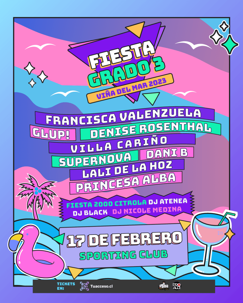 Para comenzar el 2023 con todo, Fiesta Grado 3 regresa con los mejores exponentes de la música chilena, en dos encuentros que prometen ser los hitos de este verano. En Coquimbo, la jornada se realizará el 20 de enero en el Centro de Eventos Vive Peñuelas, mientras que en Viña del Mar, la cita será el 17 de febrero en el Sporting Club. Tickets a la venta en Tuacceso.cl.