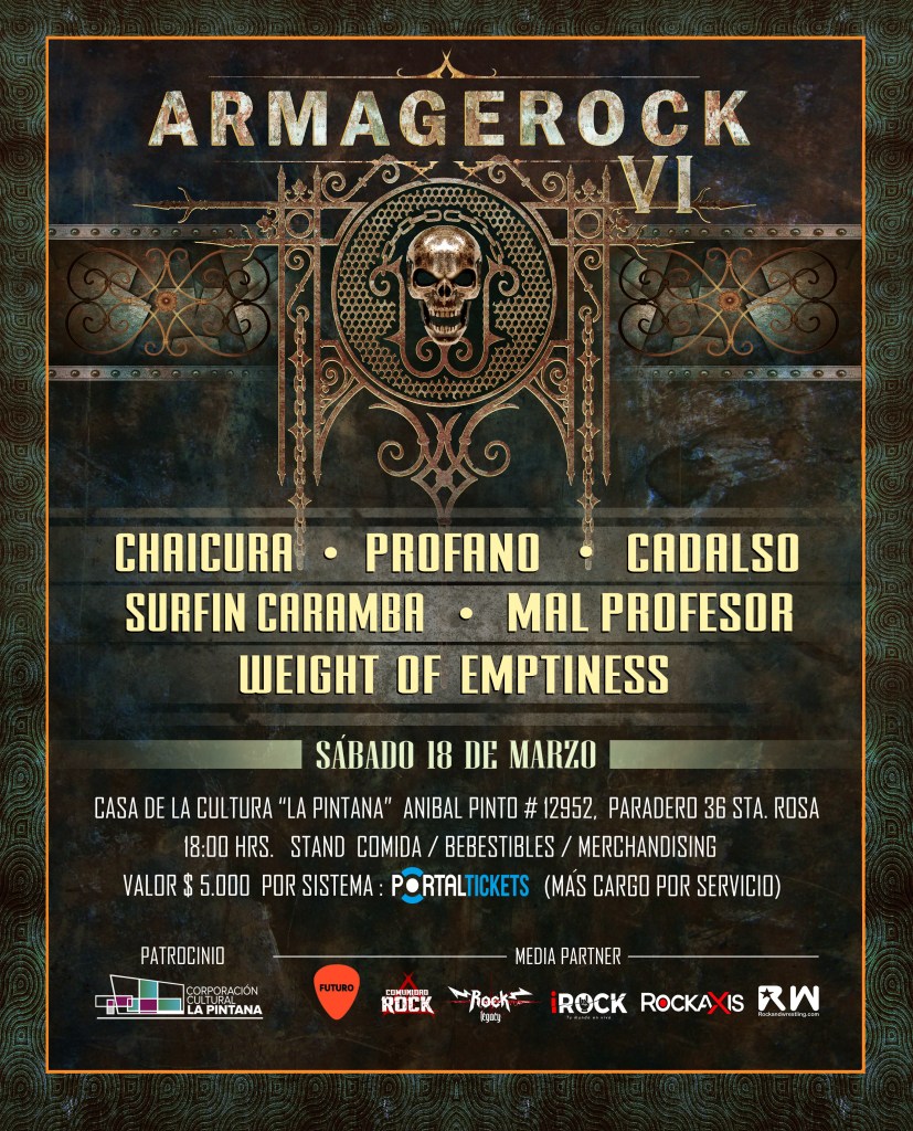 Armagerock es un festival autogestionado que nace el año 2016 en la comuna de La Pintana, que ya ha tenido cinco versiones en las que miles de asistentes han podido disfrutar de una treintena de importantes bandas nacionales. Sin duda, es una iniciativa que busca aportar a la diversidad de los espacios culturales de la comuna, por lo que cuenta con el importante patrocinio de la Corporación Cultural de La Pintana.