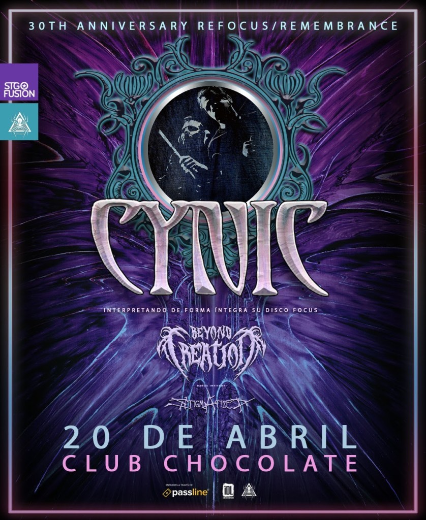 Cynic, banda de metal estadounidense, se presentará el 20 de abril en el Club Chocolate (Ernesto Pinto Lagarrigue 192, Recoleta), gracias a la producción de Spider y Stgo Fusión.