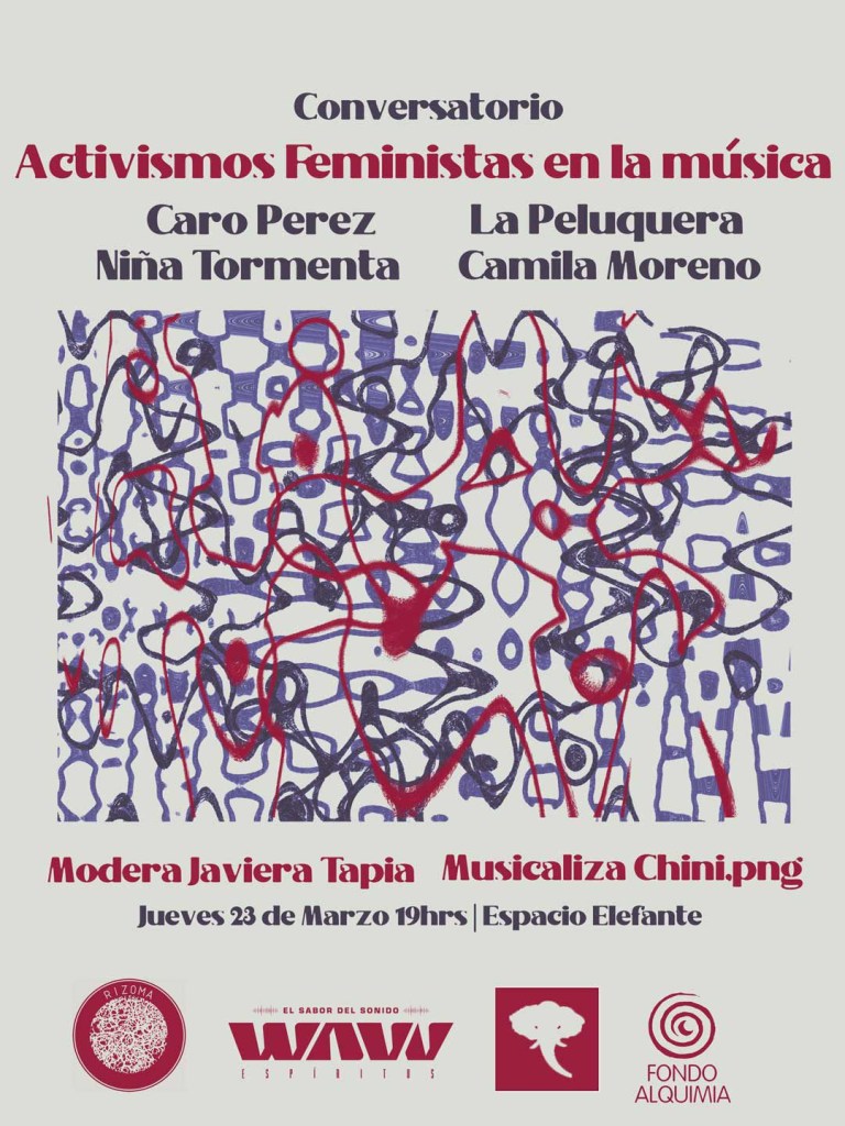 Camila Moreno, Caro Pérez, Niña Tormenta y La Peluquera serán panelistas del encuentro “Activismos feministas en la música”, que se realizará el 23 de marzo desde las 19:00 horas en el auditorio Espacio Elefante. Chini.png dará un show al cierre.