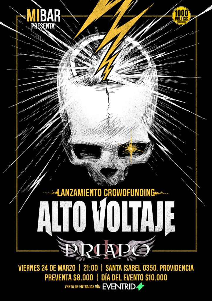 La banda Alto Voltaje agenda concierto 24 de marzo a las 21:00 hrs. en MiBar (Santa Isabel 0350, Providencia) junto a Priapo, donde lanzarán su campaña de crowdfunding.