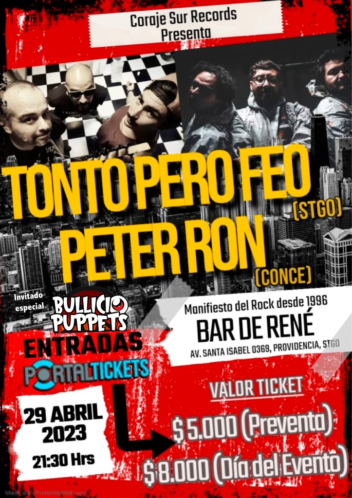 El trío de rock chileno Tonto Pero Feo ha tomado la decisión de realizar su último concierto en vivo el próximo sábado 29 de abril a partir de las 21.30 hrs, en el Bar de René, ubicado en Av. Santa Isabel 0369, Providencia,