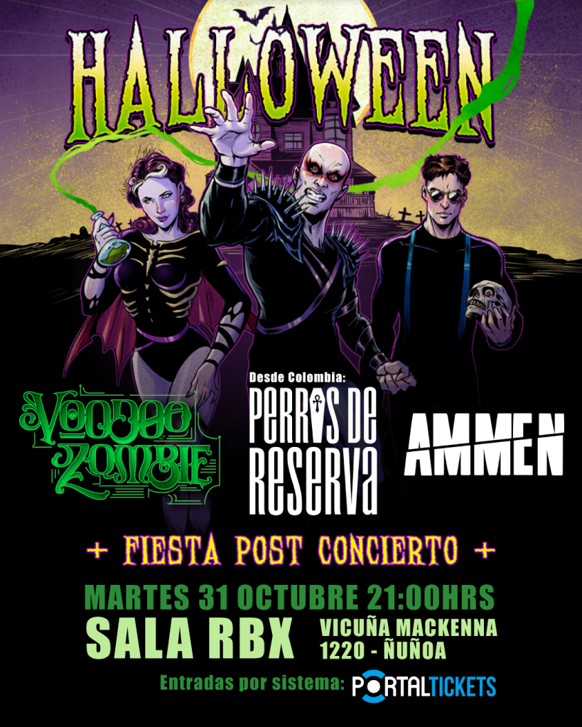La banda nacional Voodoo Zombie vuelve con una fiesta de Halloween y, esta vez, suma invitados internacionales, en una noche llena de horror y rock and roll. En esta oportunidad, será junto a Perros de Reserva y Ammen, el próximo 31 de octubre desde las 21 hrs. en RBX, ubicado en Vicuña Mackenna 1220, Ñuñoa.