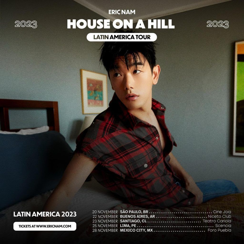 El jueves 23 de noviembre, desde las 21:00 horas en el Teatro Cariola, el Eric Nam repasará su más reciente disco «House on a Hill», en el marco de una gira mundial que ya pasó por Norteamérica, y que continuará en Europa, Asia y Oceanía.