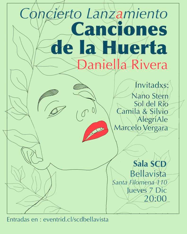 Canciones de la Huerta” tendrá un imperdible lanzamiento en vivo el 7 de diciembre en la Sala SCD Bellavista. Será el primer show de Daniella Rivera con su proyecto solista y contará con la participación de invitados de la escena musical chilena. Las entradas están disponibles en Eventrid y la cita está fijada para las 20:00 horas.