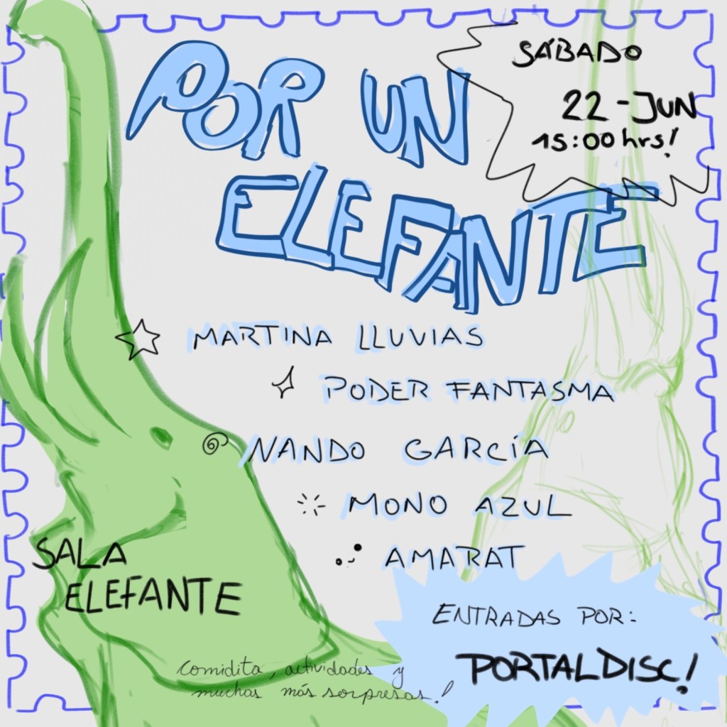 El equipo del Centro Cultural Espacio Elefante anuncia una jornada a beneficio para celebrar sus 10 años de trayectoria y recaudar fondos para la renovación de equipos técnicos esenciales. El evento se llevará a cabo el sábado 22 de junio, de 15:00 a 21:00 horas en la sala Espacio Elefante, y contará con la participación de artistas de la escena independiente nacional: Martina Lluvias, Nando García, Poder Fantasma, Mono Azul y Amarat.