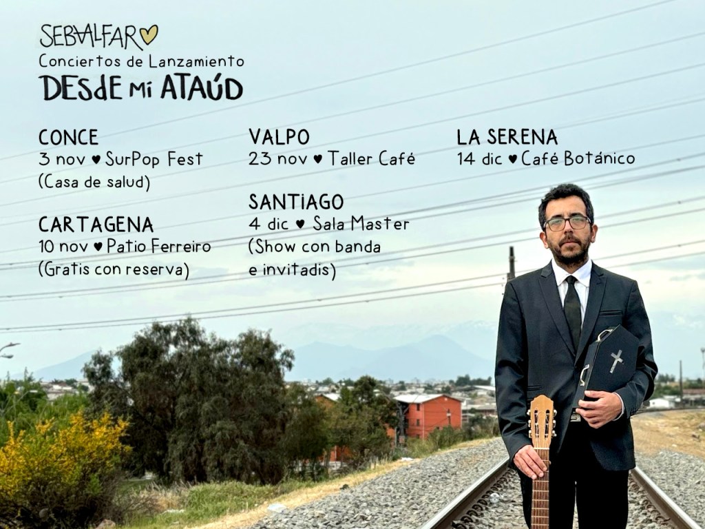Valparaíso, ciudad vecina del músico, escuchará «Desde mi Ataúd» en formato live en Taller Café el 23 de noviembre desde las 17 horas, un especial concierto con el estreno mundial del formato banda. La capital chilena se viste de luto el 4 de diciembre, desde las 20:00 horas, en Sala Master con banda, invitados y mucha pirotecnia fúnebre, para luego viajar al norte y debutar en La Serena con un show en Café Botánico, el sábado 14 de diciembre.