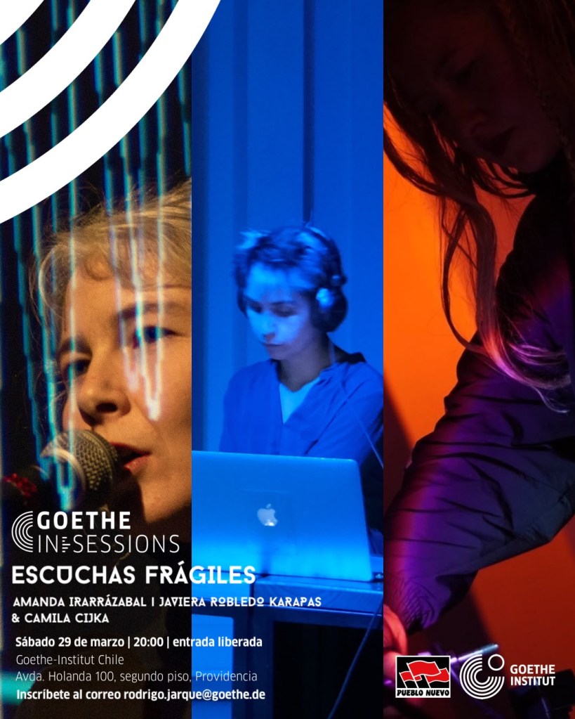 El Goethe-Institut Chile albergará el sábado 29 de marzo de 2025, a las 20:00 horas, el lanzamiento de Escuchas Frágiles, disco colaborativo de Amanda Irarrázabal, Camila Cijka, Javi Robledo Karapas y Valentina Villarroel.