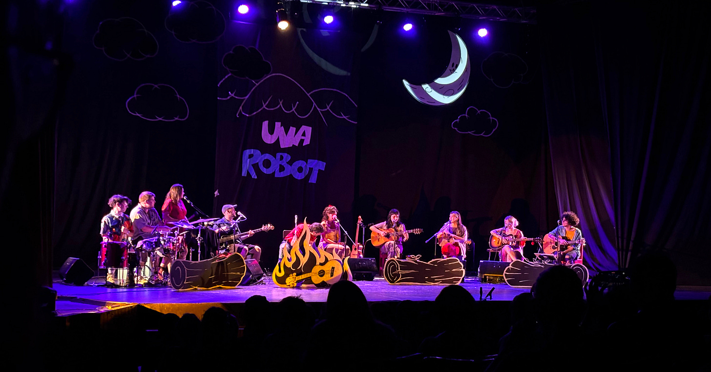 Este 2026 es un año de metas que no pienso dejar tiradas. Entre ellas, retomar la sección de crónicas (QSDC): un ejercicio para compartir sobre música en vivo y, a la vez, una forma de surfear mi ansiedad en espacios públicos. No había mejor forma de resetear este proyecto que con la celebración del VI Festival Uva Robot en el Aula Magna del Liceo Manuel de Salas, en Ñuñoa (gracias a Tiare Galaz por la invitación).