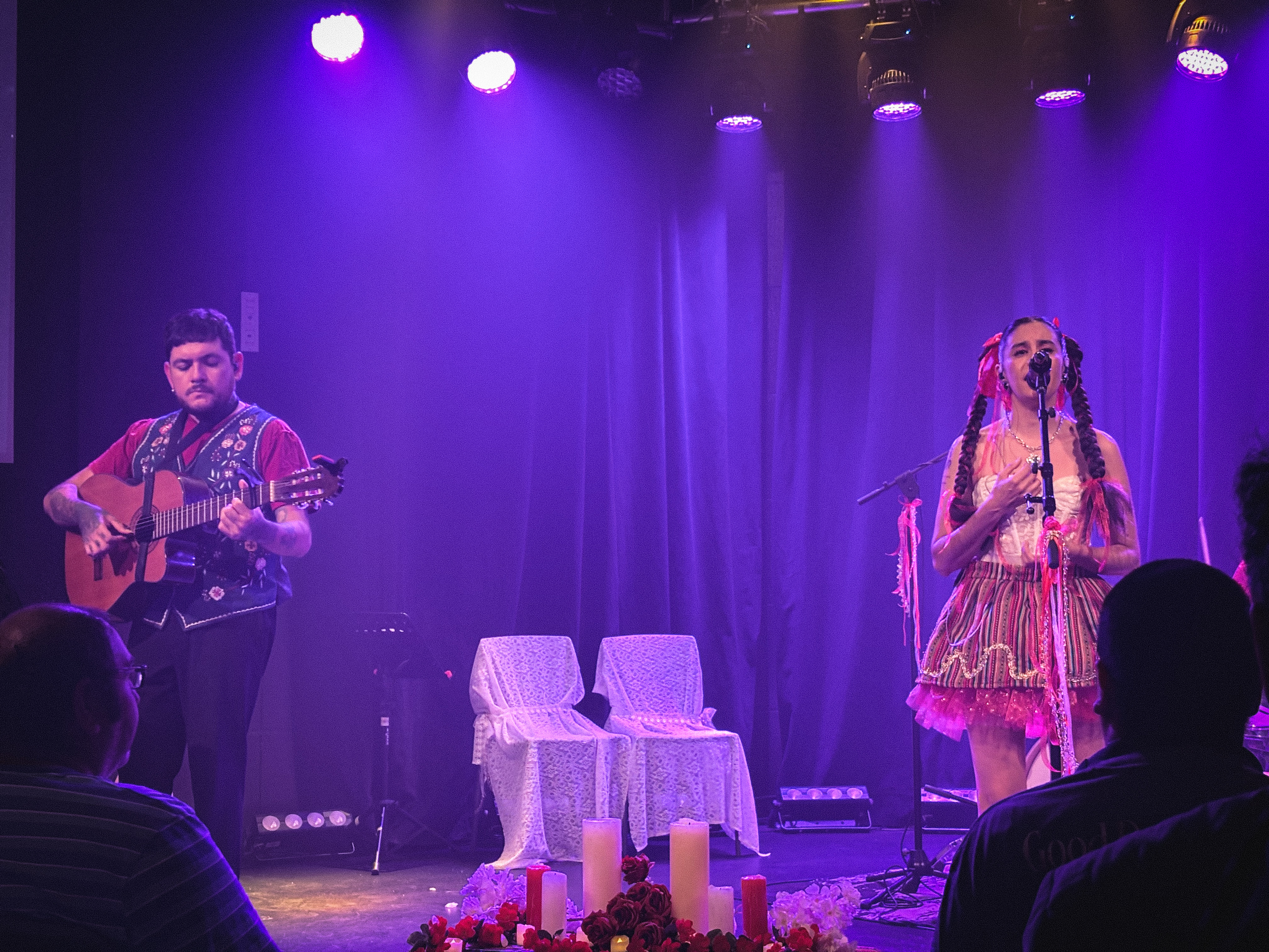 Después de una breve pausa, aparece la protagonista de la noche junto a Marcelo “Maco” Cornejo en cuerdas y a Daniela Riquelme en percusión. Estaba todo seteado.